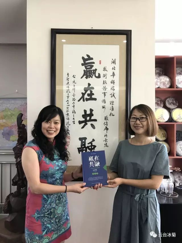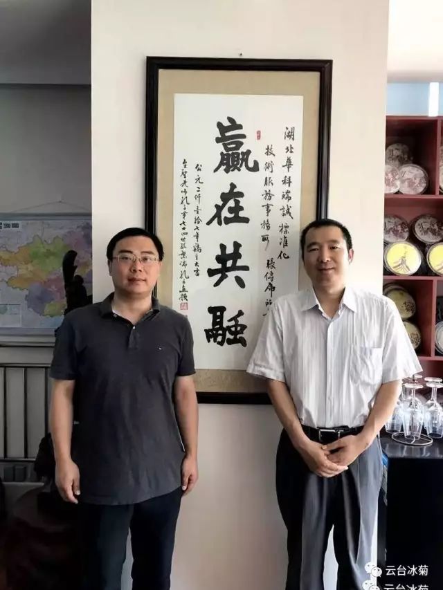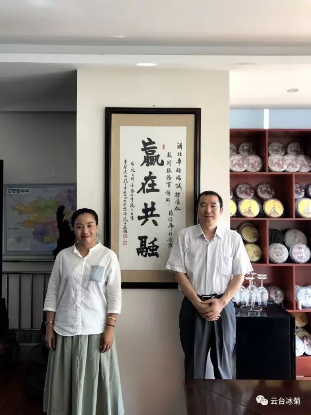 湖北焦作商會(huì)張傳虎會(huì)長(圖左)與云臺(tái)冰菊崔愛敏總經(jīng)理(圖右)共商云臺(tái)冰菊發(fā)展宏圖