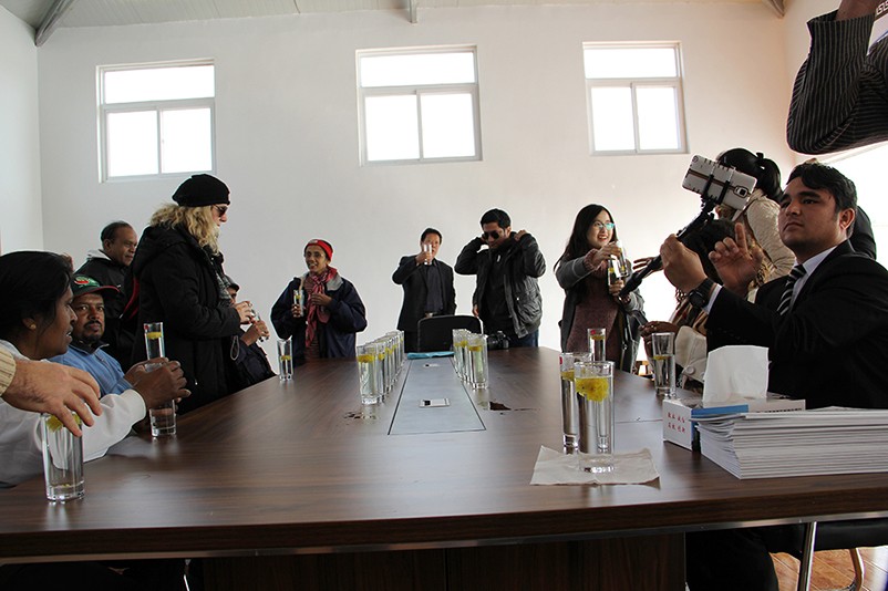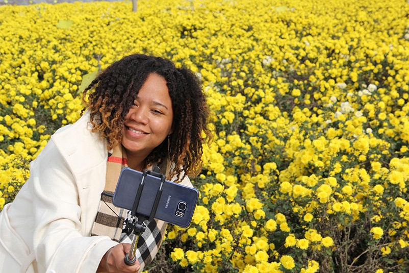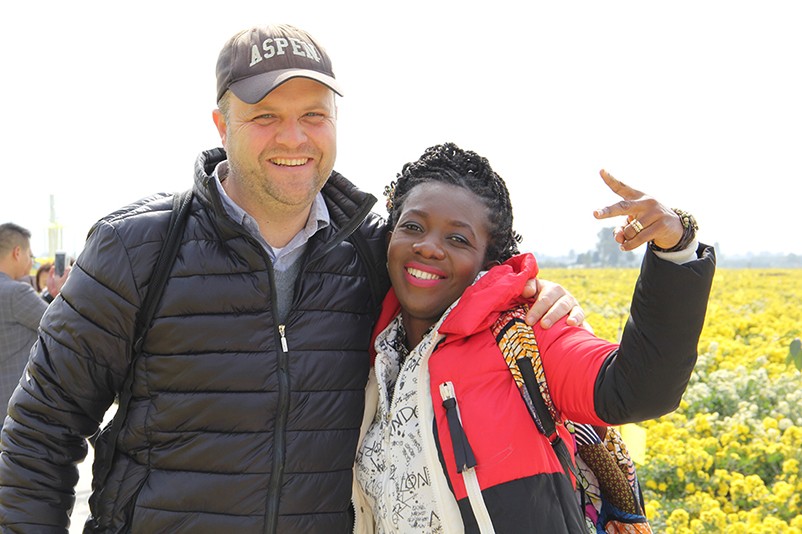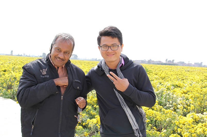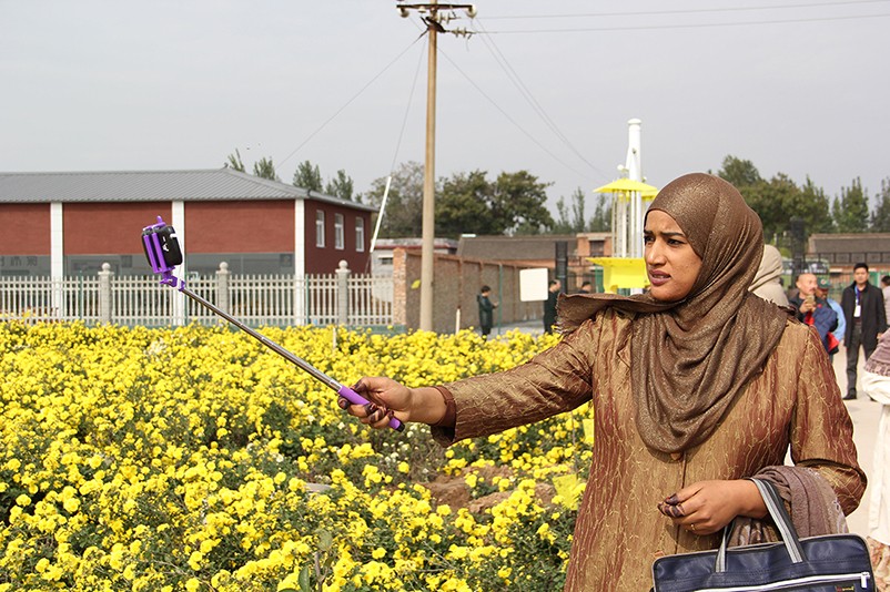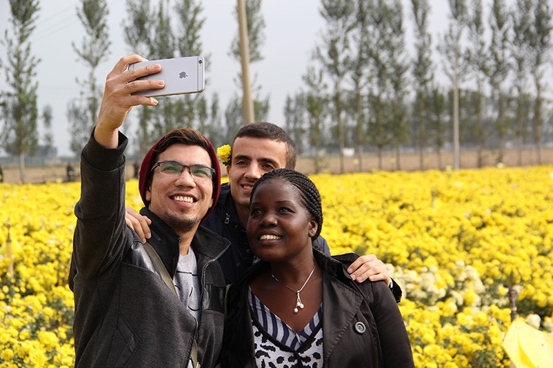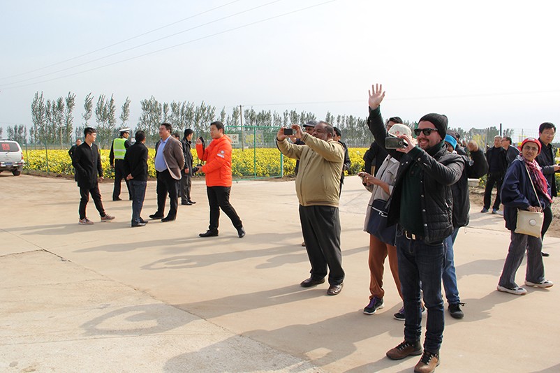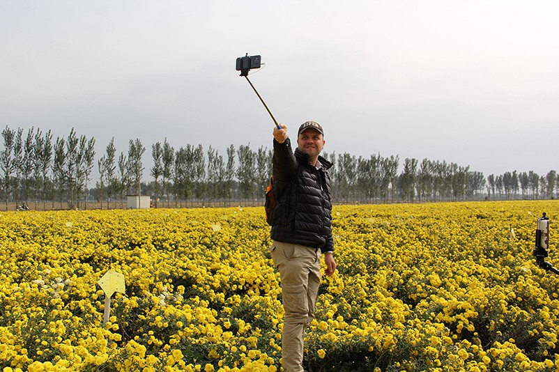 這也在拍,那也在拍,看來這些外國專家對咱們的云臺冰菊很有興趣么~各類膚色的人聚在一起共同賞菊品菊,場面和諧極了,看來不僅藝術(shù)能促進各國間的文化交流,農(nóng)業(yè)照樣有聚集人心的魅力?。?/p>